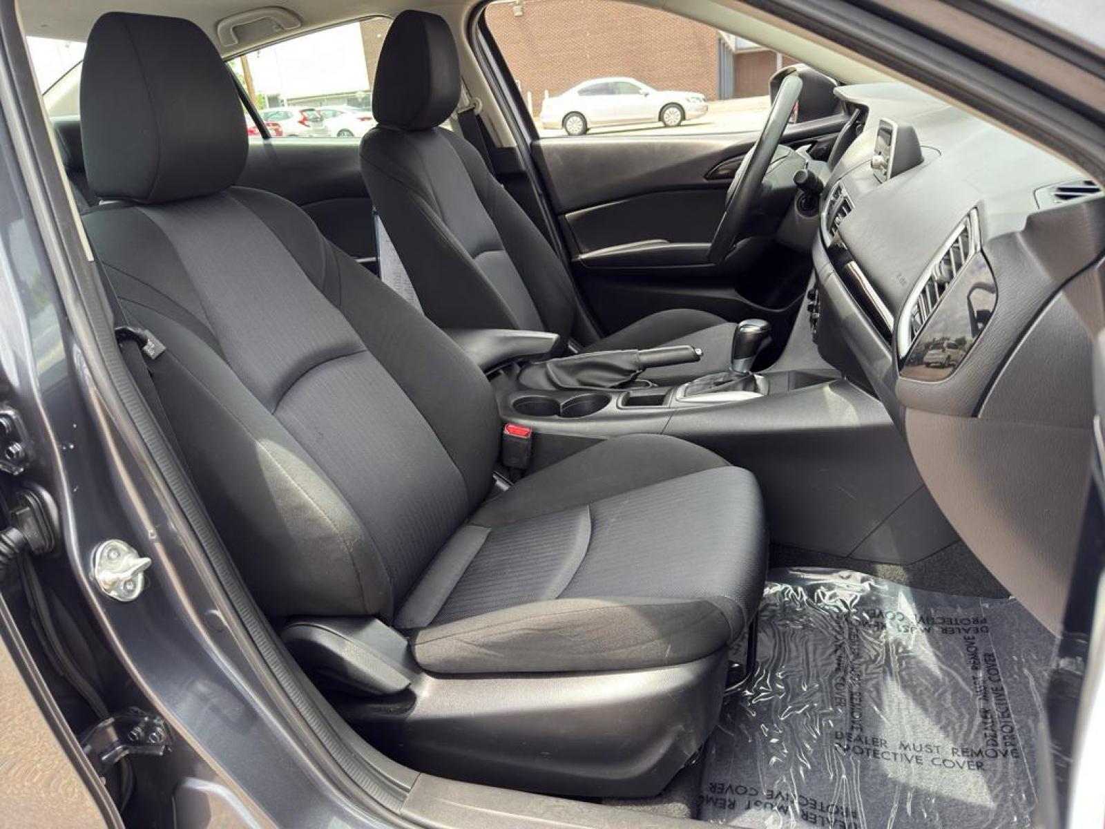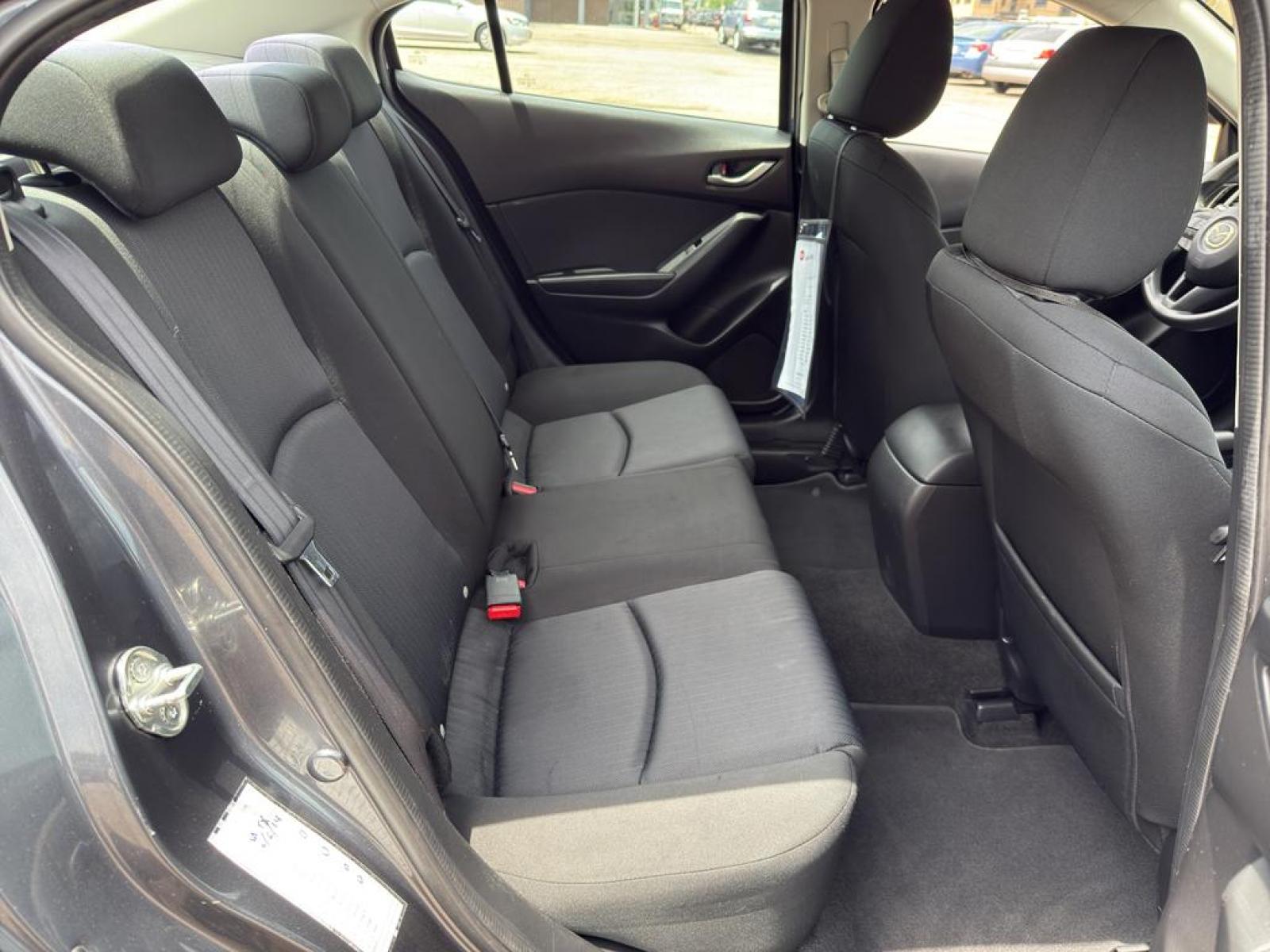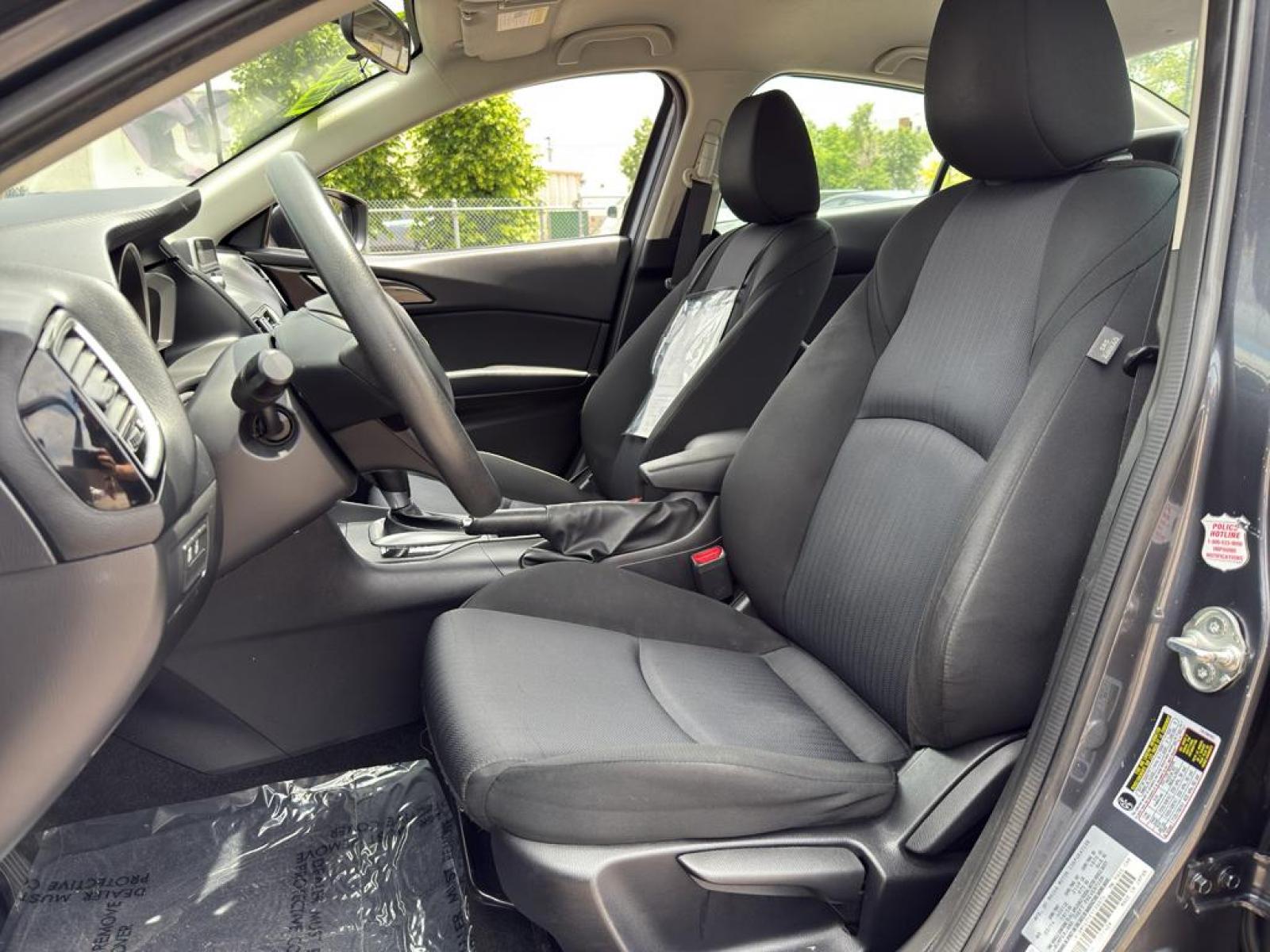 The Mazda Mazda3 i Sport's exterior is elegantly designed with aerodynamic lines and a contemporary silhouette that stands out on the road. Inside, the cabin is thoughtfully crafted to provide comfort and convenience for both the driver and passengers. The interior features durable cloth upholstery and a user-friendly layout, allowing for easy access to all controls and features.