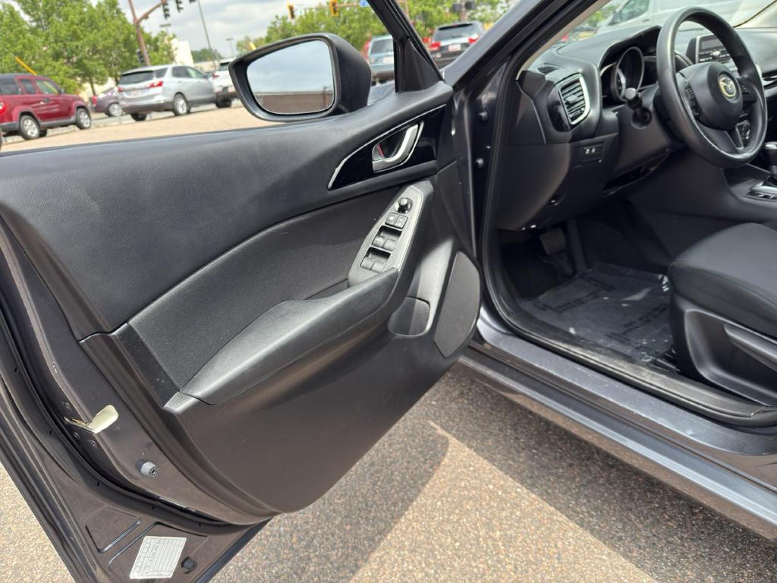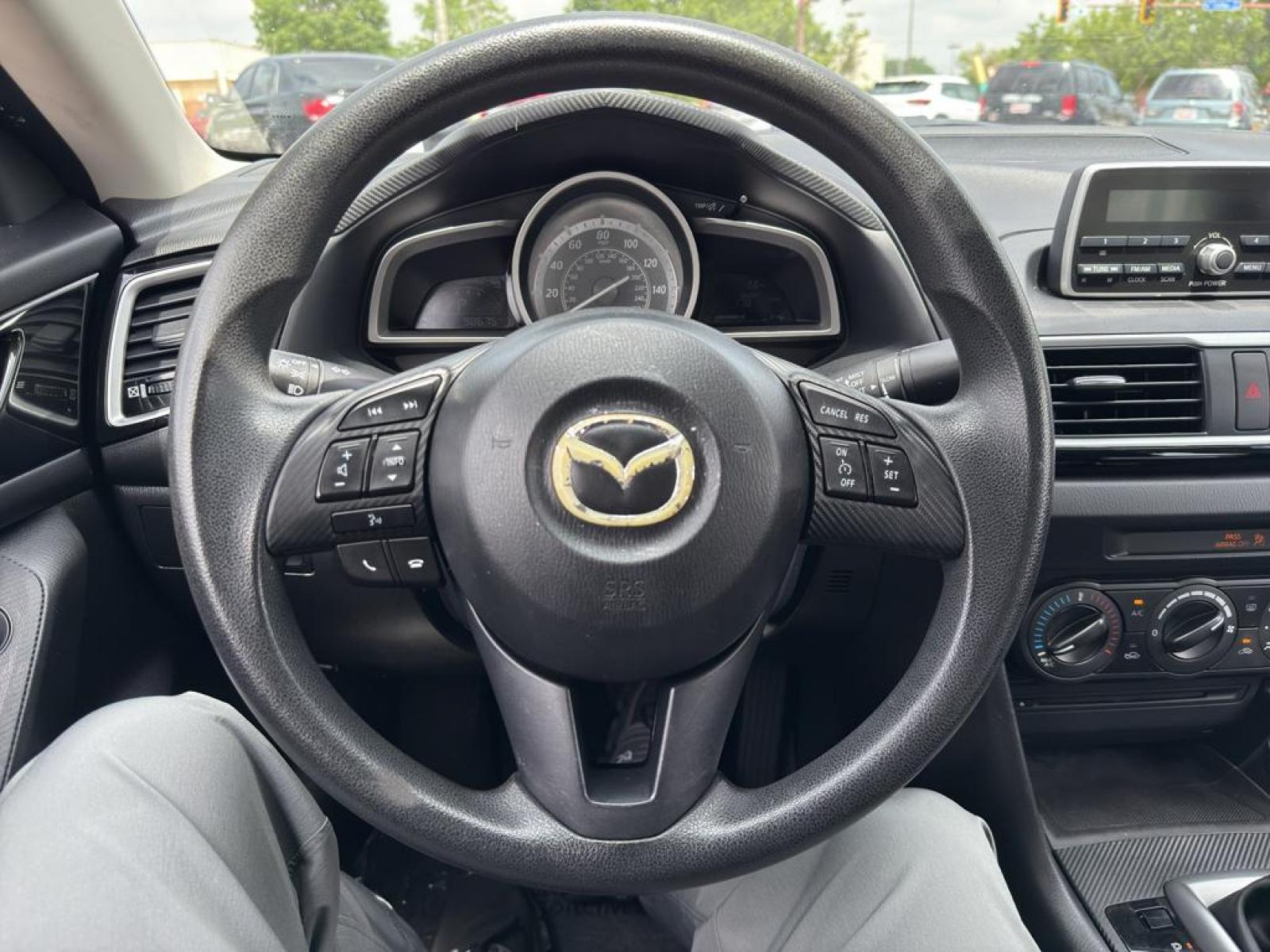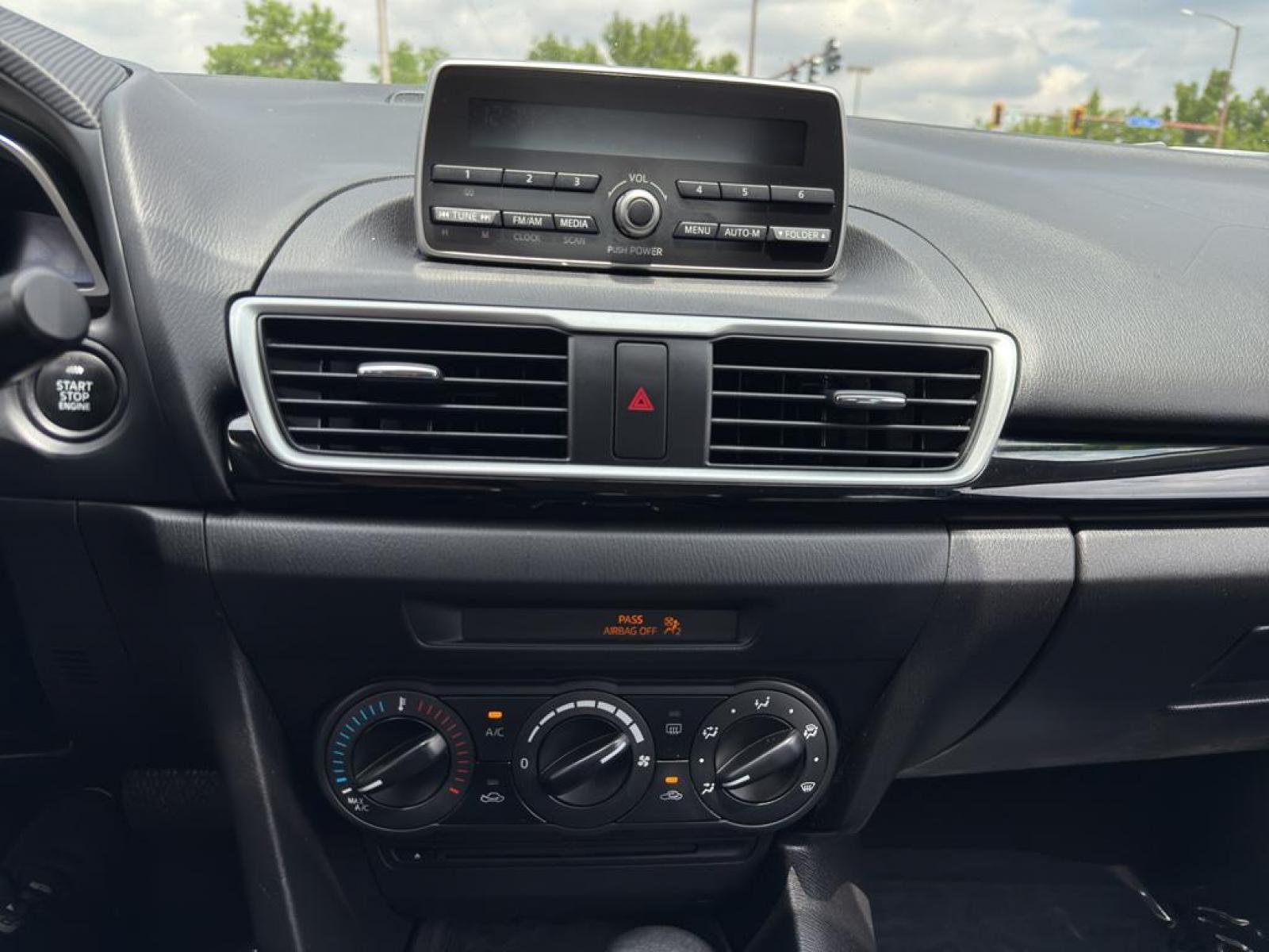 The Mazda Mazda3 i Sport's exterior is elegantly designed with aerodynamic lines and a contemporary silhouette that stands out on the road. Inside, the cabin is thoughtfully crafted to provide comfort and convenience for both the driver and passengers. The interior features durable cloth upholstery and a user-friendly layout, allowing for easy access to all controls and features.